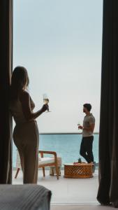Dieses geräumige Doppelzimmer ist klimatisiert und verfügt über schallisolierte Wände, einen Balkon mit Meerblick sowie ein eigenes Bad mit einer Dusche. In dieser Wohneinheit befindet sich 1 Bett.