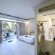 Wszystkie pokoje wyposażone są w łóżko z baldachimem, telewizor z płaskim ekranem, minibar i odtwarzacz DVD. Wille dysponują prywatnym basenem i roztacza się z nich piękny widok na plażę. W częściowo odkrytych łazienkach znajduje się wanna.