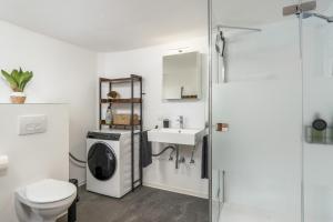 Apartmán ubytování poskytuje 2 ložnice, 2 koupelny, ložní prádlo, ručníky, satelitní TV s plochou obrazovkou, jídelní kout a plně vybavenou kuchyň. Z terasy ubytování ubytování se otevírá výhled na město. Koupelna v KAKADU - Zentral - Workplace - Gemeinschaftsterrasse, SNES disponuje sprchou, pračkou, fénem a toaletními potřebami zdarma.