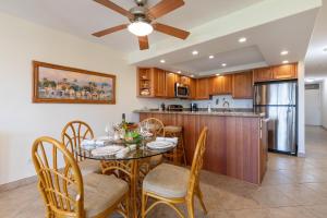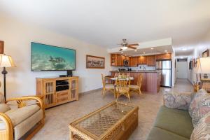 Cette maison de vacances avec climatisation se compose de 1 chambre, d'un salon, d'une cuisine entièrement équipée avec un réfrigérateur, ainsi que de 2 salles de bains avec une douche et un sèche-cheveux. Le linge de lit et les serviettes sont mis à disposition par Kamaole Sands 3-305.