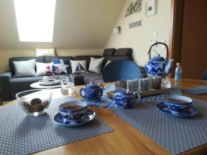 Apartmán ubytování nabízí 2 ložnice, 1 koupelnu, ložní prádlo, ručníky, kabelovou TV s plochou obrazovkou, jídelní kout a plně vybavenou kuchyň. Z balkonu ubytování Käptn's Koje se nabízí výhled na město. V koupelně ubytování ubytování nechybí sprcha ani fén.