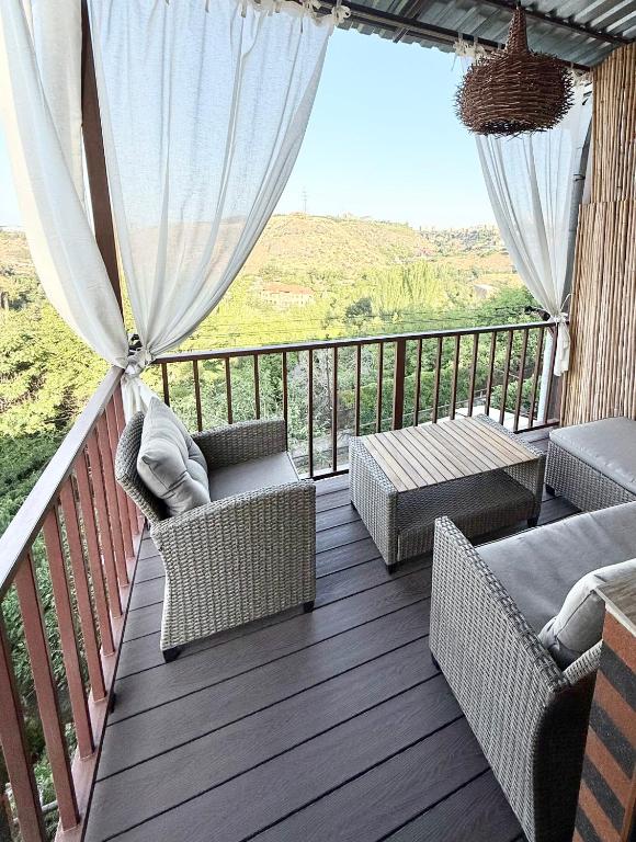 Boasting a private entrance, this air-conditioned holiday home includes 1 living room, 1 separate bedroom and 1 bathroom with a shower and a bidet. In the kitchen, guests will find a stovetop, a refrigerator, kitchenware and a microwave. Featuring a terrace with garden views, this holiday home also offers a washing machine and a flat-screen TV. The unit has 2 beds.