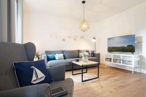Apartament Kellenhusen Tor 27 Mittenmang mieści dwie sypialnie, salon, łazienkę z prysznicem i suszarką oraz kuchnię z lodówką i ekspresem. Goście mają do dyspozycji telewizor.