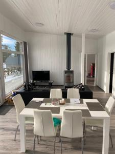 The sauna and fireplace are the standout features of this holiday home. Guests will find a stovetop, a refrigerator, a dishwasher and kitchenware in the kitchen. The holiday home also features a barbecue. The spacious air-conditioned holiday home offers a flat-screen TV, a washing machine, a private entrance, a tea and coffee maker as well as sea views. The unit has 7 beds.