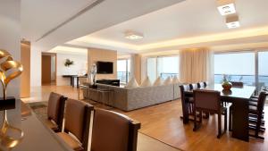 Jasne i przestronne pokoje w hotelu Kempinski dysponują balkonem z widokiem na morze. Wyposażenie każdego z nich obejmuje zamontowany na ścianie telewizor z płaskim ekranem i dostępem do kanałów satelitarnych. W przestronnej łazience znajduje się szlafrok i suszarka do włosów.