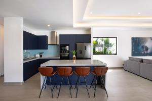 Cette villa avec climatisation comporte 1 chambre, une télévision à écran plat, ainsi qu’une cuisine.