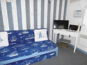 The apartment has a flat-screen TV and a living room. The kitchenette is fitted with a microwave, a toaster and a fridge, as well as coffee machine and kettle.