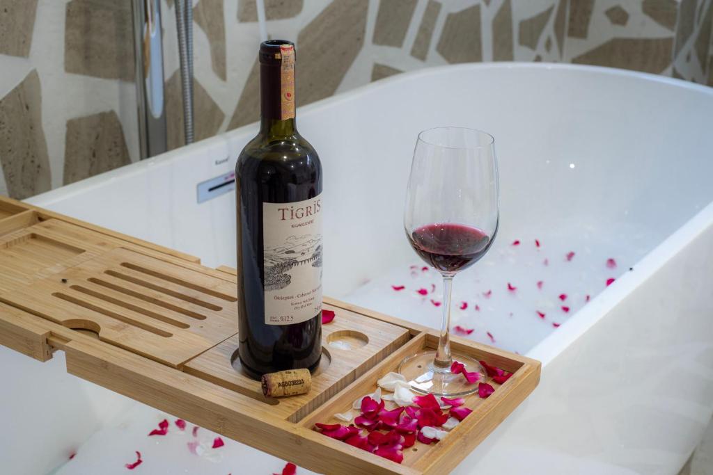 The spacious double room offers air conditioning, a tea and coffee maker, a terrace with garden views as well as a private bathroom boasting a bath. The unit is equipped with 1 bed.