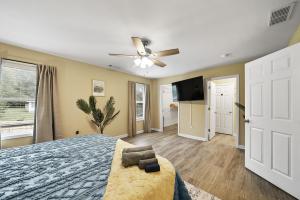 Featuring a private entrance, this air-conditioned holiday home consists of 1 living room, 4 separate bedrooms and 4 bathrooms with a bath and a shower. Meals can be prepared in the well-fitted kitchen, which is equipped with a stovetop, a refrigerator, a dishwasher and kitchenware. The spacious holiday home provides a washing machine, a tea and coffee maker, a seating area, a flat-screen TV with streaming services, as well as a quiet street view. The unit offers 6 beds.