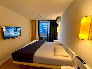 In the well-fitted kitchen, guests will find a stovetop, a refrigerator, kitchenware and a microwave. This air-conditioned quadruple room is comprised of a flat-screen TV with cable channels, a private bathroom as well as a balcony with sea views. The unit has 3 beds.