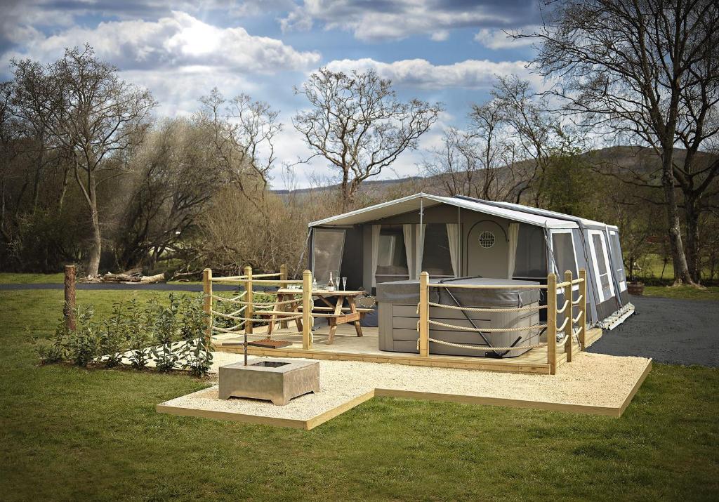 This holiday home provides a hot tub. The holiday home features 2 bedrooms, 1 bathroom and a kitchen. The holiday home's kitchen is available for cooking and storing food. This holiday home offers heating, a TV and a patio. The unit offers 3 beds.