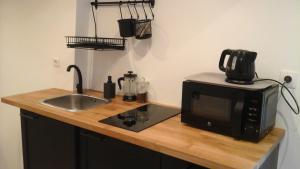 The studio offers a wardrobe, heating, as well as a private bathroom featuring a shower and a hairdryer. In the well-equipped kitchen, guests will find a stovetop, a refrigerator, kitchenware and a microwave. The studio features tiled floors, a seating area with a flat-screen TV with cable channels, a private entrance, a tea and coffee maker, as well as a dining area. V této ubytovací jednotce je k dispozici 1 postel.