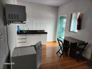 Klimatizovaný apartmán v KITNET'S DA DENI má 1 ložnici, obývací prostor, 1 koupelnu a kuchyňský kout s mikrovlnnou troubou a lednicí. Koupelna je vybavená sprchou.