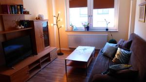 Apartmán Kleines Studio Eismöwe nabízí 1 ložnici, 1 koupelnu, plně vybavenou kuchyň s jídelním koutem a lednicí a obývací část s TV s plochou obrazovkou. Koupelna v Kleines Studio Eismöwe zahrnuje sprchu a toaletní potřeby zdarma. V ubytování ubytování jsou pro hosty připraveny ručníky a ložní prádlo.