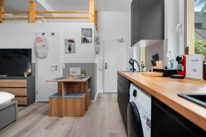 Apartmán Komfortables Studio in Köln-Ehrenfeld, Küche, Vollausstattung, Netflix, 1 Min zur U-Bahn, 10 Min zum Neumarkt zahrnuje 1 ložnici, plně vybavenou kuchyň s lednicí a myčkou a 1 koupelnu se sprchou. Součástí apartmánu Komfortables Studio in Köln-Ehrenfeld, Küche, Vollausstattung, Netflix, 1 Min zur U-Bahn, 10 Min zum Neumarkt je posezení, pračka a koupelna s toaletními potřebami zdarma.