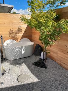 This holiday home's standout features are the hot tub and private open-air bath. Boasting a private entrance, this air-conditioned holiday home features 1 living room, 3 separate bedrooms and 1 bathroom with a bath and a shower. The well-fitted kitchen features a stovetop, a refrigerator, kitchenware and a microwave. The holiday home has a washing machine, tatami, a tea and coffee maker as well as a terrace with garden views. The unit has 1 bed and 6 futons.