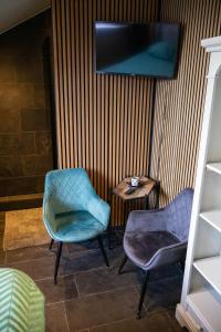 Das Koraal - Comfortabele kamer bij B&B Gezond aan Zee - Toegang Wellnesstuin meerprijs ist mit einem Flachbild-TV ausgestattet. In diesem Bed & Breakfast werden Handtücher und Bettwäsche angeboten.