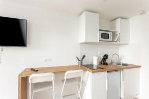 Apartmán Korrigan má 1 ložnici, TV s plochou obrazovkou a kuchyňský kout.