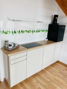 This apartment features a kitchenette with a microwave, a refrigerator and coffee and tea facilities. There is also a seating area and modern technology.