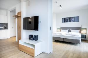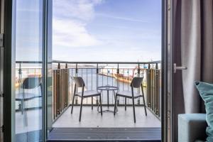 Apartament Krusespeicher Krusespeicher 5-67 z balkonem oferuje sypialnię, salon z TV, łazienkę z prysznicem oraz kuchnię z lodówką i zmywarką. Z obiektu Krusespeicher Krusespeicher 5-67 roztacza się widok na morze. Ręczniki i pościel są dostępne w apartamencie.