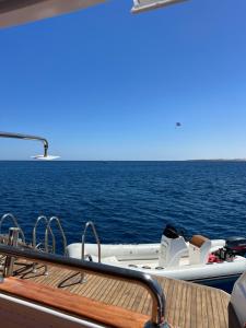 The boat provides guests with a balcony, sea views, a seating area, satellite flat-screen TV, a fully equipped kitchen with an oven and a microwave, and a private bathroom with bidet and free toiletries. A fridge, a minibar and kitchenware are also offered, as well as a coffee machine and a kettle. At the boat, units are equipped with bed linen and towels.