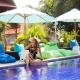 Presso questo affittacamere, le camere hanno un patio con vista sulla piscina.