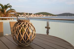 This apartment features views of the sea and comes complete with a balcony, a kitchen and a seating area.