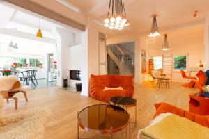 Camere: 1This holiday home provides a fireplace. Featuring a private entrance, this spacious holiday home also comprises 2 bedrooms, a seating area and 2 bathrooms with a bath and a shower. Guests will find a stovetop, a refrigerator, a dishwasher and kitchenware in the well-fitted kitchen. The holiday home also provides guests with a barbecue. The holiday home features a washing machine, a coffee machine, a wardrobe as well as a terrace with garden views. The unit offers 3 beds.