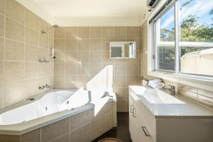 Guests will have a special experience as this holiday home provides a spa bath. Featuring a private entrance, this air-conditioned holiday home comprises 1 living room, 2 separate bedrooms and 2 bathrooms with a walk-in shower and a hairdryer. Guests will find a stovetop, a refrigerator, a dishwasher and kitchenware in the kitchen. The holiday home also provides guests with a barbecue. The holiday home features parquet floors, a seating area with a flat-screen TV, a washing machine, a tea and coffee maker as well as garden views. The unit offers 2 beds and 1 futon.