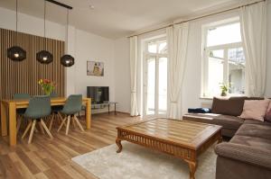 The spacious apartment has 1 bedroom, a living room with a TV, an equipped kitchen, and 1 bathroom with a shower and a hair dryer. Kurhaus Nordstrand Ferienwohnung Nr 34 includes an outdoor dining area.