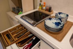 This villa's special feature is the hot tub. Featuring a private entrance, this air-conditioned villa consists of 1 living room, 1 separate bedroom and 1 bathroom with a bath and a shower. The fully equipped kitchen has a stovetop, a refrigerator, kitchenware and a microwave. The villa features tatami floors, a seating area with a flat-screen TV with streaming services, a washing machine, a tea and coffee maker, as well as a dining area. The unit offers 2 beds and 2 futons.