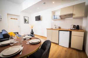 This apartment consists of 1 living room, 1 separate bedroom and 1 bathroom with a walk-in shower and a hairdryer. Meals can be prepared in the well-fitted kitchen, which is equipped with a refrigerator, a microwave and a toaster. This apartment features a tea and coffee maker, flat-screen TV, a quiet street view, as well as chocolate for guests. V této ubytovací jednotce je k dispozici 2 postele.