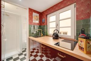 Cet appartement possède 1 chambre, une télévision à écran plat avec les chaînes du câble, une cuisine équipée avec un réfrigérateur et un micro-ondes, ainsi que 1 salle de bains avec une douche. Le linge de lit et les serviettes sont fournis par L'Appartement d'Amélie.