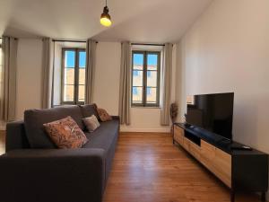 The fully equipped kitchen features a refrigerator, a microwave and a toaster. The apartment offers soundproof walls, a coffee machine, a seating area, a flat-screen TV, as well as a quiet street view. V této ubytovací jednotce je k dispozici 1 postel.