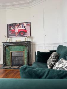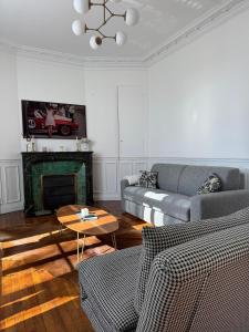 Dwupokojowy apartament L'écrin des Tanneurs - 110m2 - 2 chambres - Epernay Hyper Centre z balkonem oferuje salon z TV, łazienkę z prysznicem oraz kuchnię z lodówką i zmywarką. Z okien obiektu L'écrin des Tanneurs - 110m2 - 2 chambres - Epernay Hyper Centre roztacza się widok na miasto. Ręczniki i pościel są dostępne w apartamencie.
