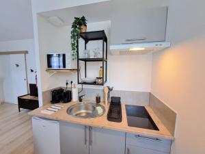 Diese Ferienwohnung ist versehen mit 1 Schlafzimmer, einer Küche mit einem Kühlschrank, einem Flachbild-TV, einem Sitzbereich und 1 Badezimmer mit einer Dusche. In dieser Ferienwohnung werden Handtücher und Bettwäsche angeboten.
