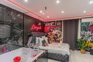 Camere: 1This apartment's standout features are the hot tub, spa bath and sauna. Boasting a private entrance, this air-conditioned apartment includes a kitchen, 1 bedroom and 1 bathroom with a shower and a hairdryer. The kitchen is fitted with a stovetop, a refrigerator and a toaster. This apartment has soundproof walls, a tea and coffee maker, a flat-screen TV with streaming services and a terrace. The unit has 1 bed.