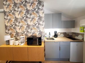 Apartmán L'IDYLLE - Studio Cocooning avec Jacuzzi zahrnuje 1 ložnici, plně vybavenou kuchyň s lednicí a troubou a 1 koupelnu se sprchou. Koupelna v ubytování disponuje vířivkou a fénem. V ubytování L'IDYLLE - Studio Cocooning avec Jacuzzi jsou pro hosty připraveny ručníky a ložní prádlo.