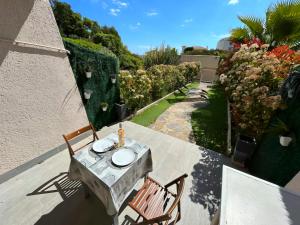 The apartment at L'instant soleil au Lavandou Apartment with a terrace and garden views features 1 bedroom, a living room, a flat-screen TV, an equipped kitchen with a dishwasher and oven, and 1 bathroom with a walk-in shower. Guests at the property can enjoy the surroundings from the outdoor dining area. For added privacy, L'instant soleil au Lavandou Apartment features a private entrance.