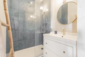 Apartmán L'Océanide - Vue mer - Parking zahrnuje 1 ložnici, 1 koupelnu, ložní prádlo, ručníky, TV, jídelní kout a plně vybavenou kuchyň. Z balkonu ubytování L'Océanide - Vue mer - Parking se nabízí výhled na moře. Koupelna je vybavená sprchou.