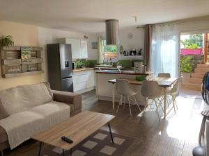 Featuring a private entrance, this holiday home comprises 1 living room, 2 separate bedrooms and 1 bathroom with a walk-in shower and a hairdryer. Guests will find a stovetop, a refrigerator, a dishwasher and kitchenware in the fully equipped kitchen. The holiday home also provides guests with a barbecue. Boasting a terrace with garden views, this holiday home also provides a washing machine and a flat-screen TV with streaming services. The unit offers 3 beds.