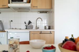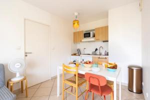 Apartmán La Canopée, Vue Port Marianne et Garage nabízí 1 ložnici, 1 koupelnu, ložní prádlo, ručníky, TV s plochou obrazovkou, plně vybavenou kuchyň a terasu s výhledem na město. V koupelně ubytování ubytování nechybí sprcha ani fén.