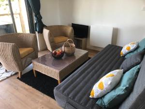 Featuring a private entrance, this holiday home consists of 1 living room, 1 separate bedroom and 1 bathroom with a shower and a hairdryer. Guests will find a stovetop, a refrigerator, a dishwasher and an oven in the well-equipped kitchen. The holiday home also offers a barbecue. Boasting a terrace with garden views, this holiday home also provides a washing machine and a flat-screen TV. The unit offers 2 beds.