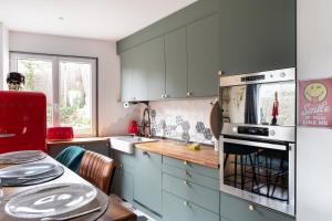 The 2-bedroom holiday home has a living room with a TV with streaming services, a fully equipped kitchen with a dishwasher and an oven, and 1 bathroom with a hair dryer. Towels and bed linen are available in the holiday home at La Capsule - Avec jacuzzi.