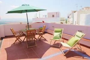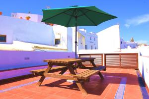 Das Apartment La Casita de Vejer bietet 2 Schlafzimmer, 1 Bad, Bettwäsche, Handtücher, Flachbild-TV, Essbereich, Küche und Terrasse mit Stadtblick.