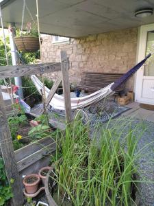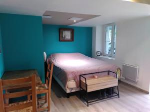 В этих апартаментах и выходом на патио, откуда открывается вид на сад, есть спальня (1). Полотенца и постельное белье включены в стоимость проживания в La chambre de la maison bleue.