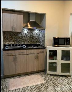 Es gibt außerdem eine Küche in manchen Wohneinheiten mit einem Kühlschrank, einer Mikrowelle und einem Toaster.