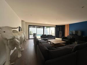 Vila má 4 ložnice, 3 koupelny, ložní prádlo, ručníky, TV s plochou obrazovkou, kuchyň s kompletním vybavením a terasu s výhledem na bazén. V koupelně ubytování La conserverie, Espace et modernité najdete sprchu, fén a bezplatné toaletní potřeby.
