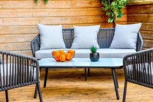 This spacious apartment consists of 1 living room, 3 separate bedrooms and 1 bathroom with a hairdryer. Guests can make meals in the kitchen that is equipped with a refrigerator, a dishwasher, kitchenware and an oven. The apartment provides a washing machine, tumble dryer, heating and a TV. The unit offers 5 beds.