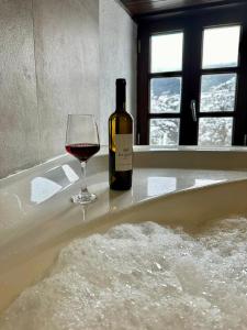 This holiday home's standout features are the hot tub, spa bath and fireplace. Featuring a private entrance, this air-conditioned holiday home consists of 1 living room, 1 separate bedroom and 1 bathroom with a shower and a hairdryer. The well-fitted kitchen features a stovetop, a refrigerator, a microwave and a toaster. Boasting a terrace with garden views, this holiday home also provides a coffee machine and a flat-screen TV. The unit offers 3 beds.